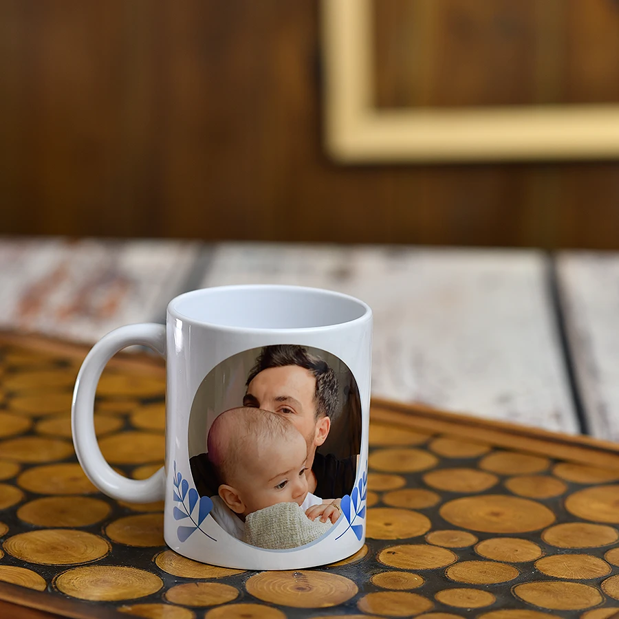 Babalar günü için tasarlanan bu fotoğraflı kupa bardak,